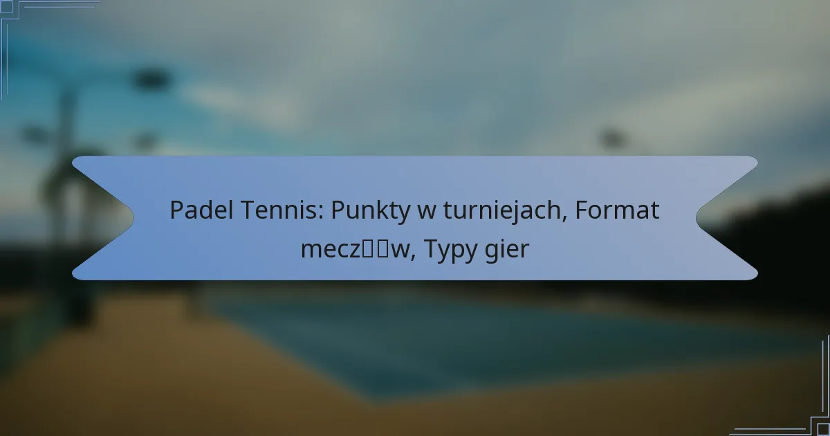 Padel Tennis: Punkty w turniejach, Format meczów, Typy gier